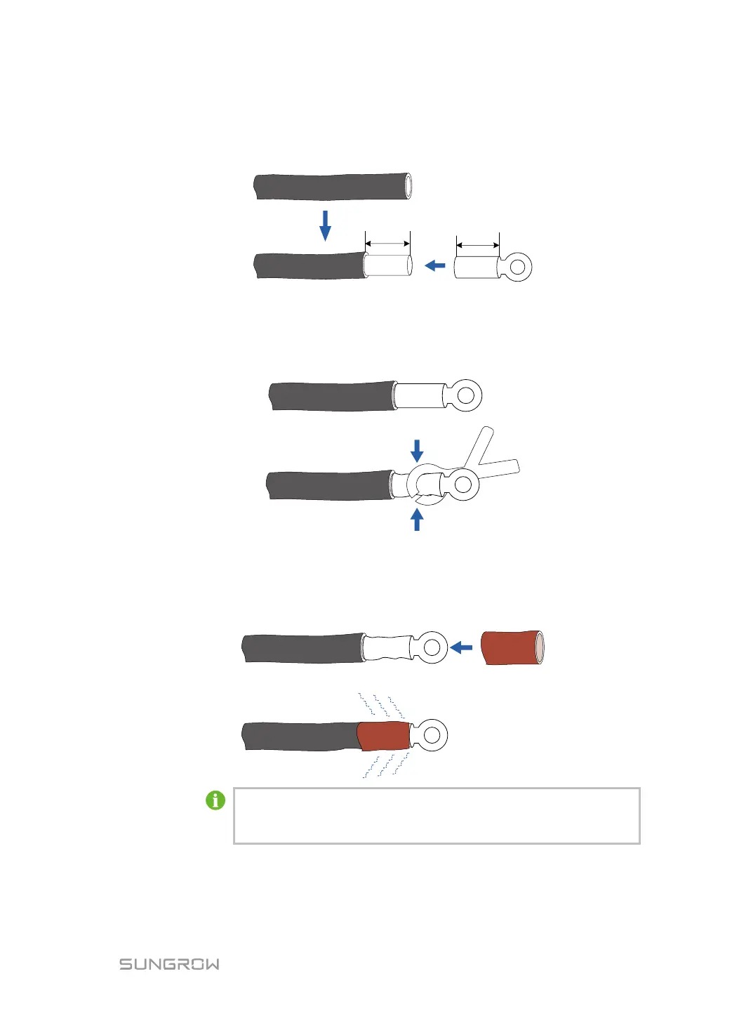 1. A tubing with length of 2cm longer than the depth of the cable lug is recommended.