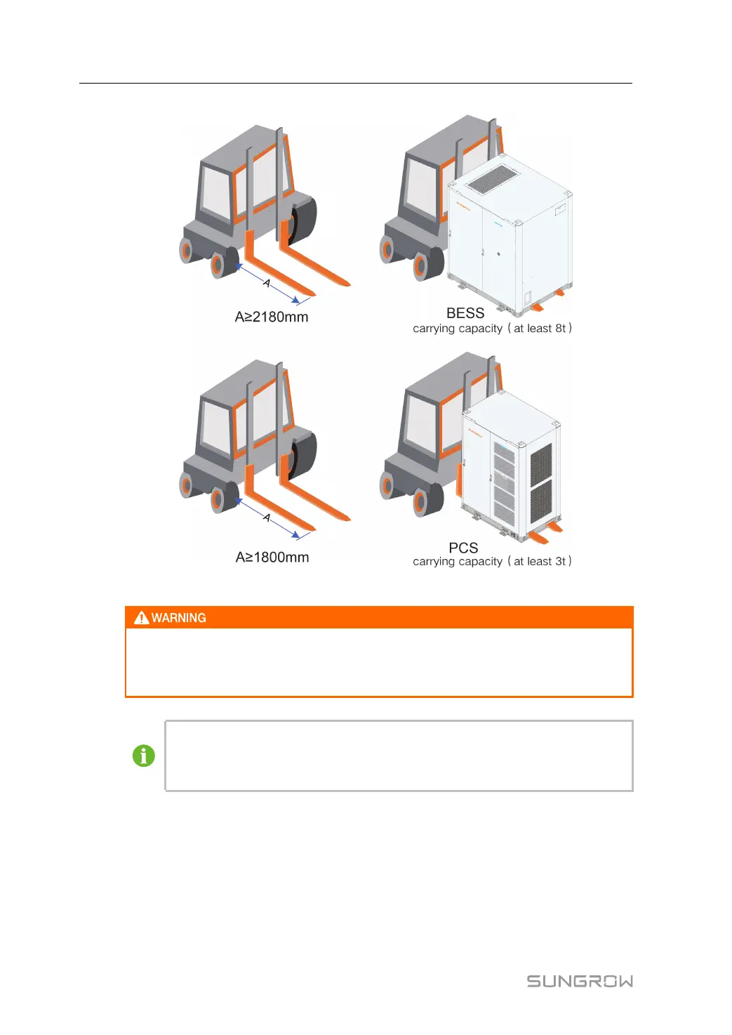 • Move the BESS and PCS through the side fork pockets at the bottom.
