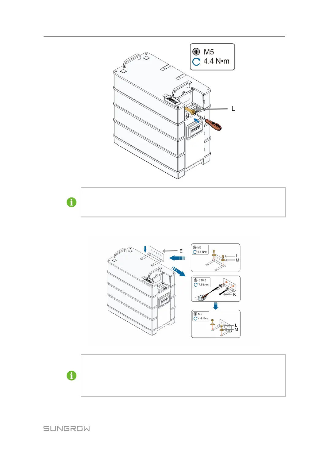 When 4 or more than 4 battery modules are installed in one base, M5 screw set is
