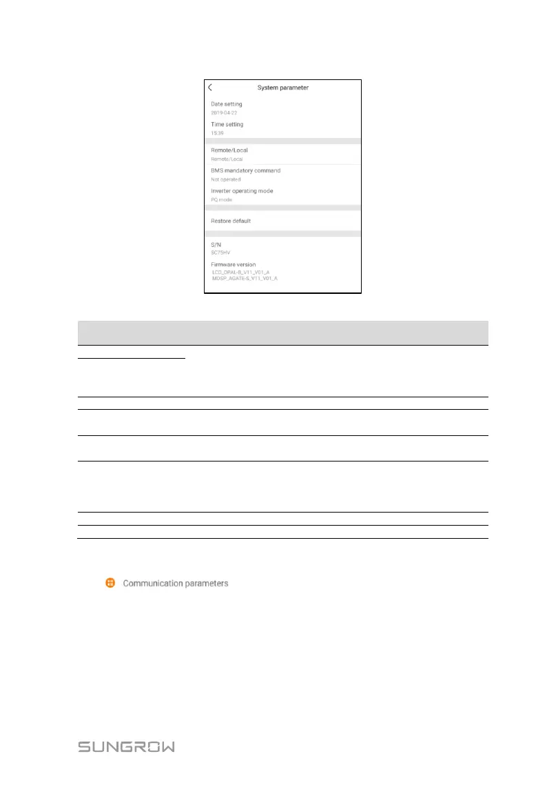 Tap " " to enter the communication parameter screen.