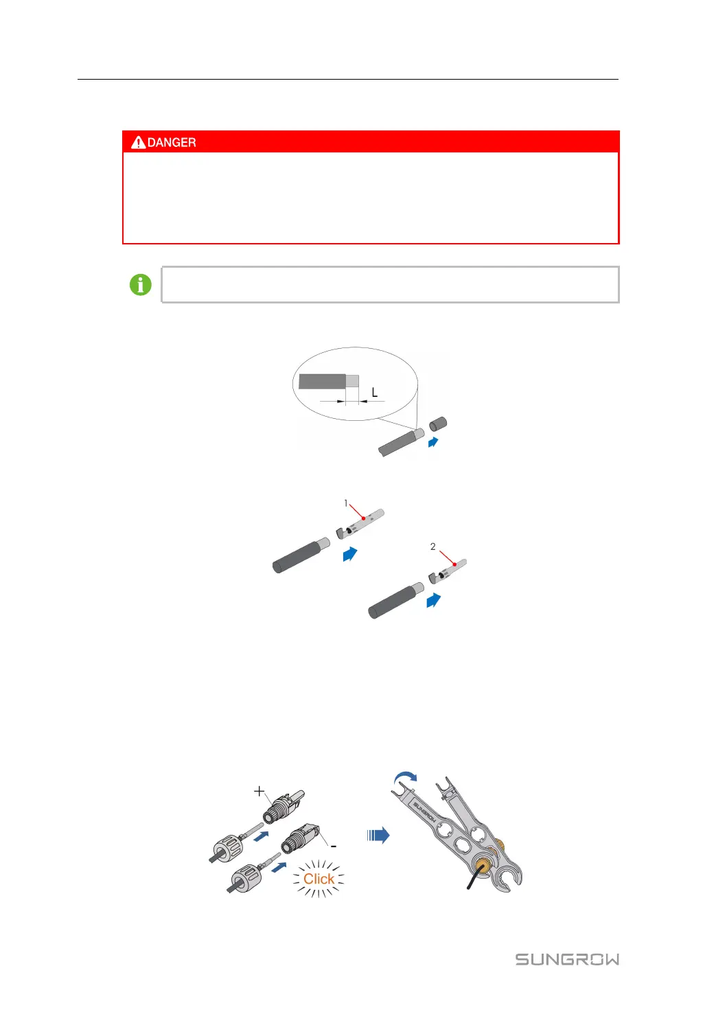 • Do not connect the DC switch and AC circuit breaker before finishing electrical