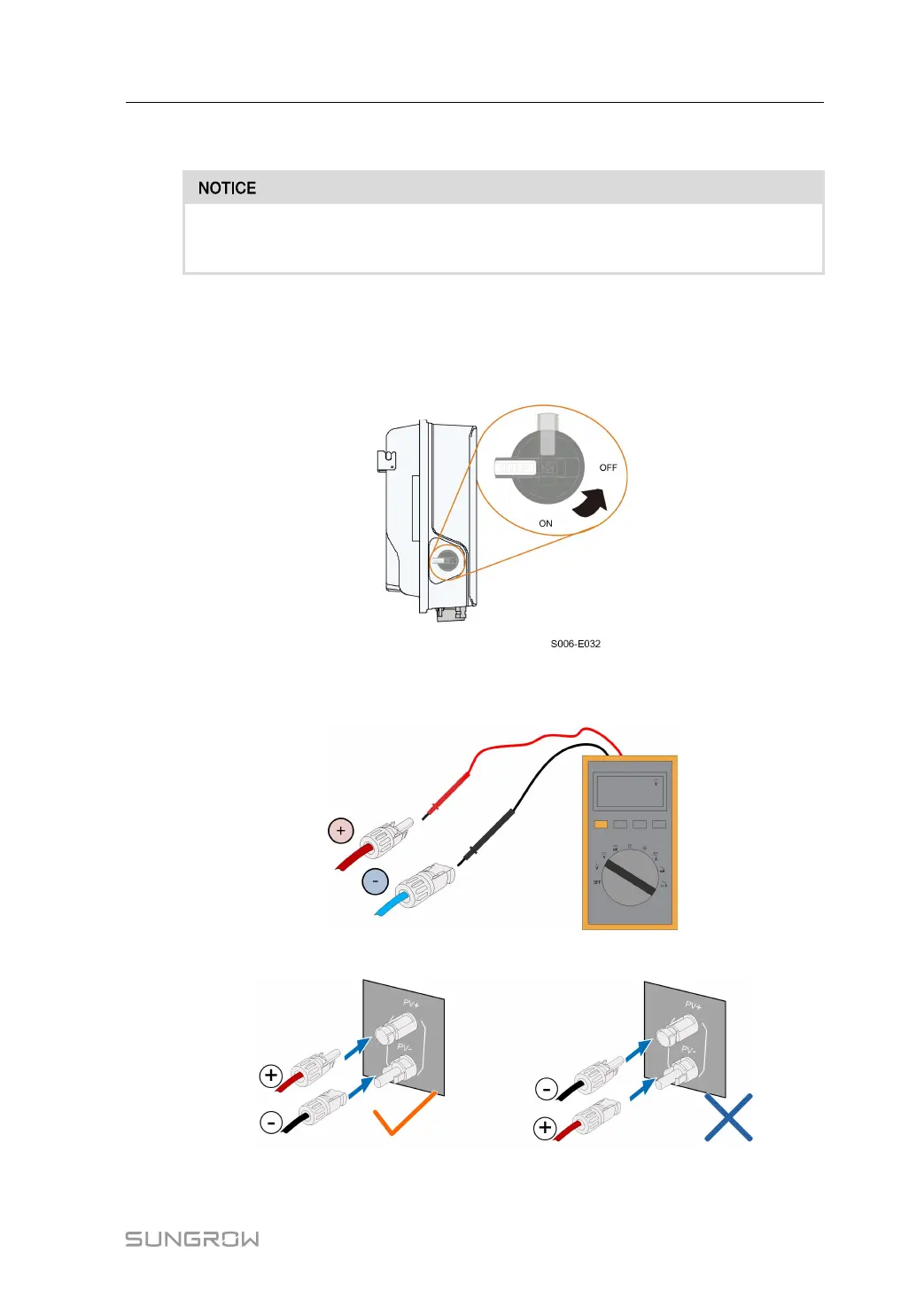 step 2 Check the cable connection of the PV string for polarity correctness and ensure that the