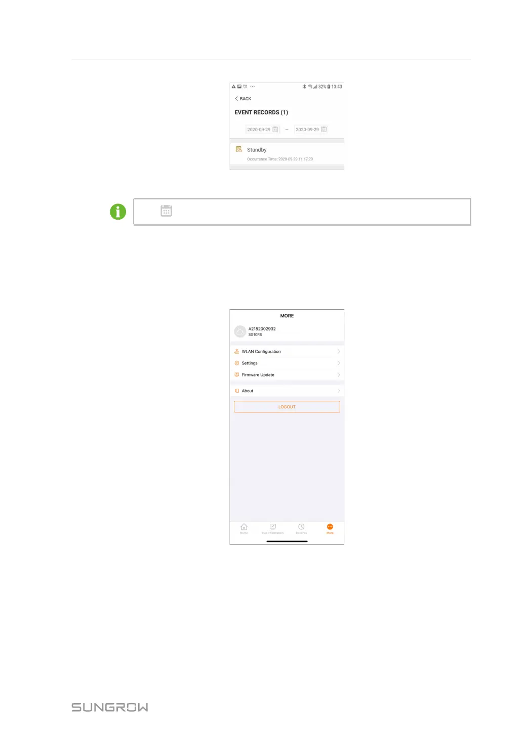 In addition to viewing the WLAN configuration and App software version, the More screen