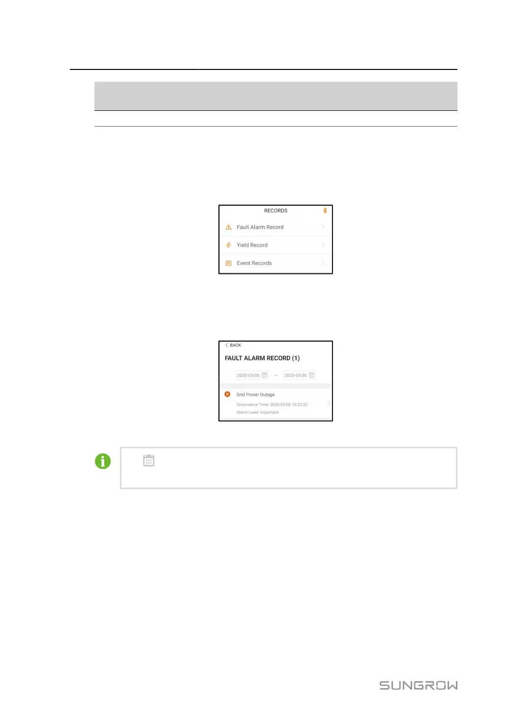 Tap Fault Alarm Record to enter the interface, as shown in the following figure.