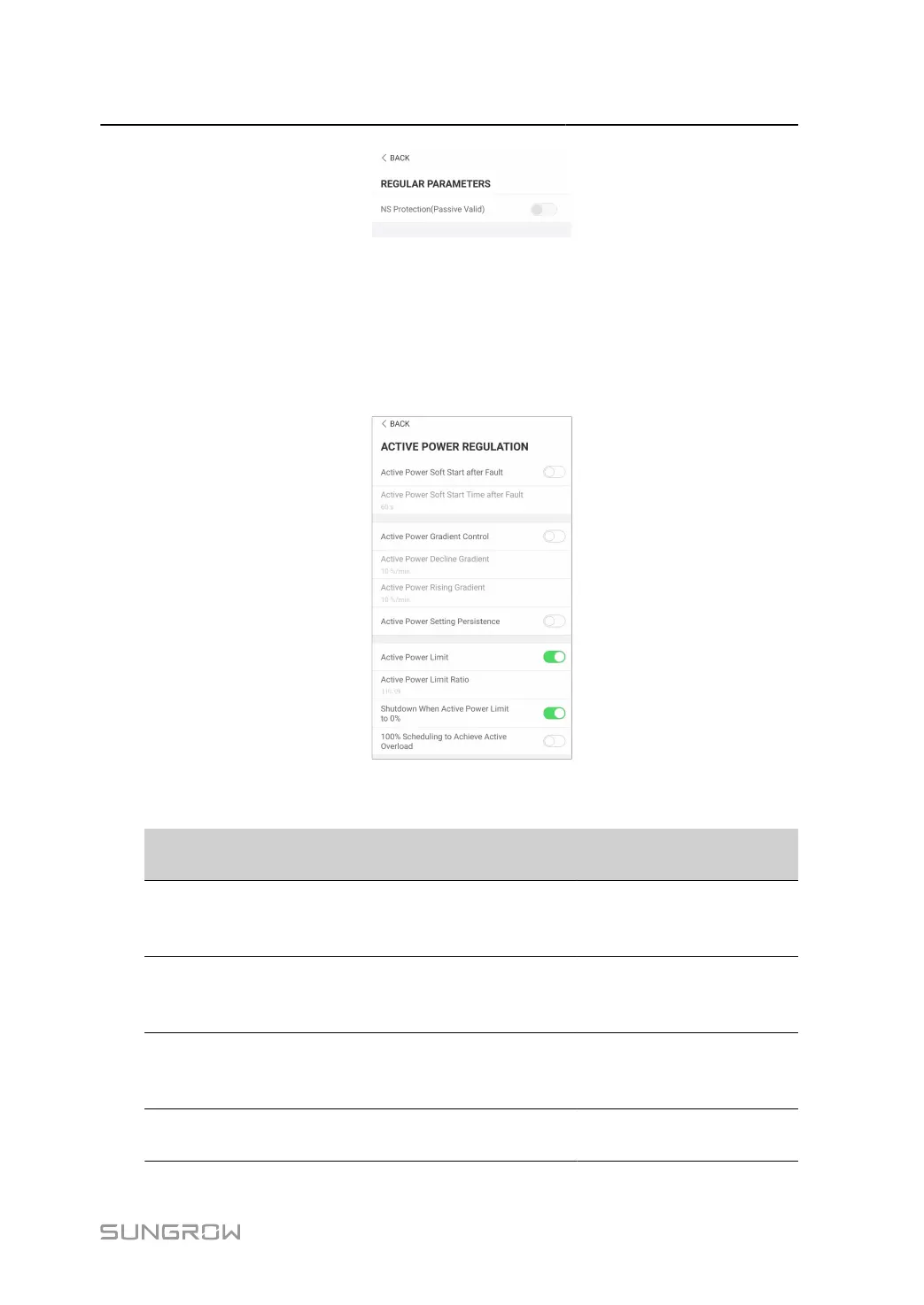 Tap Settings > Power Regulation Parameters > Active Power Regulation to enter the