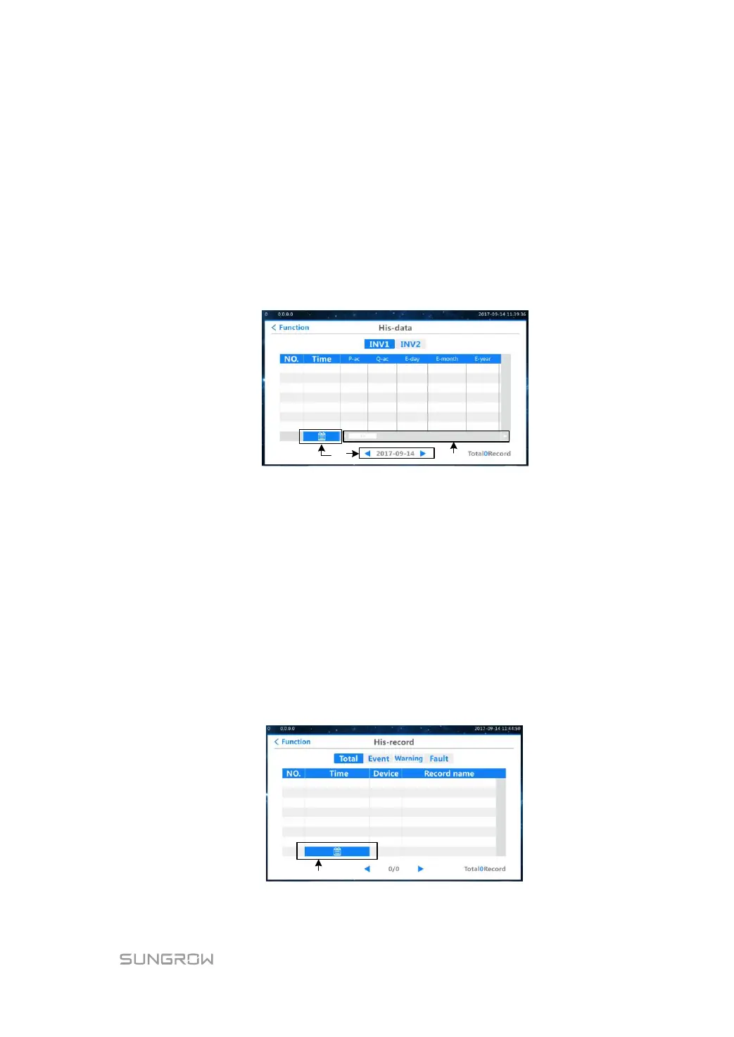The history data contains the related electrical parameters of the inverter. Proceed as