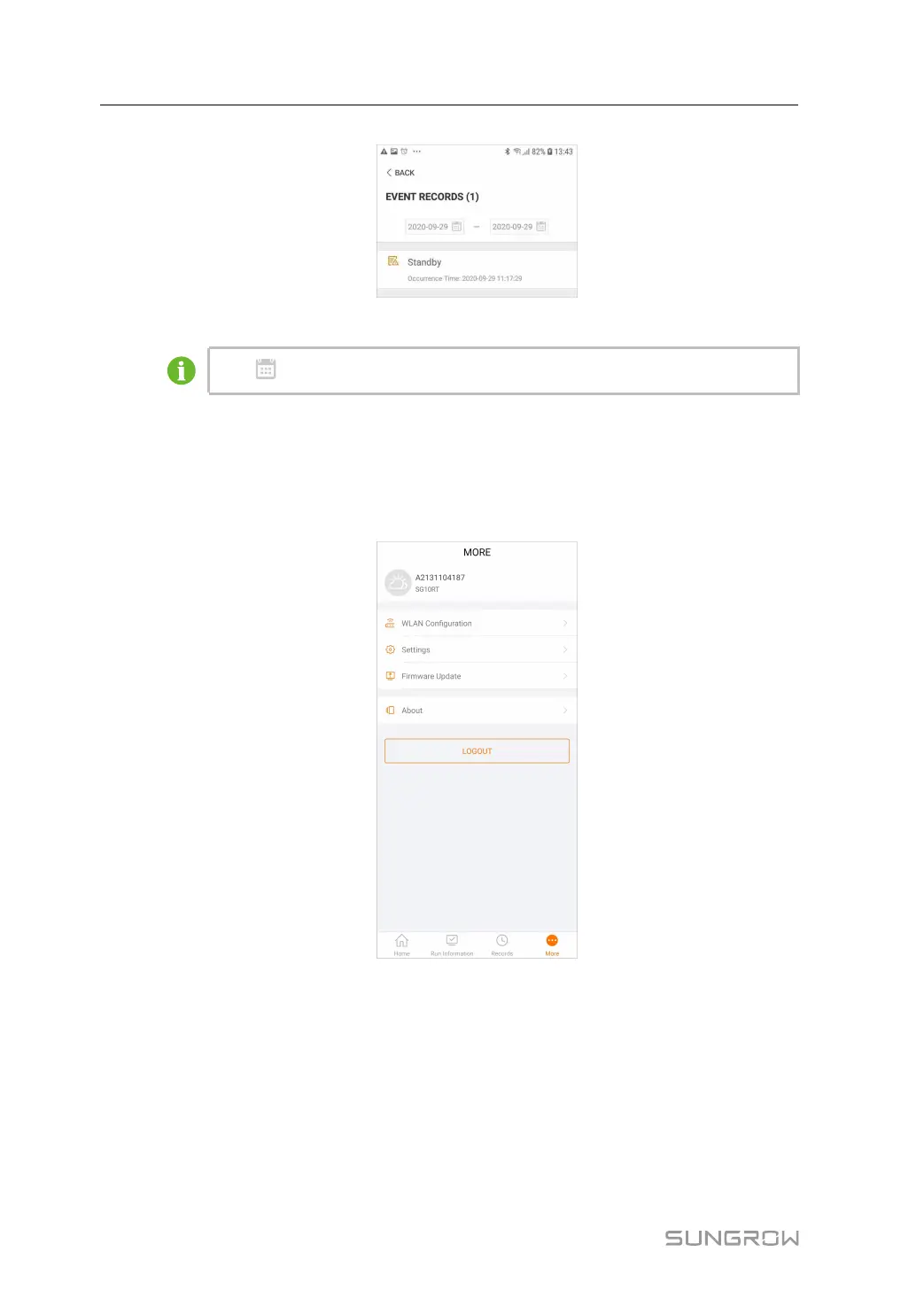 In addition to viewing the WLAN configuration and App software version, the More screen