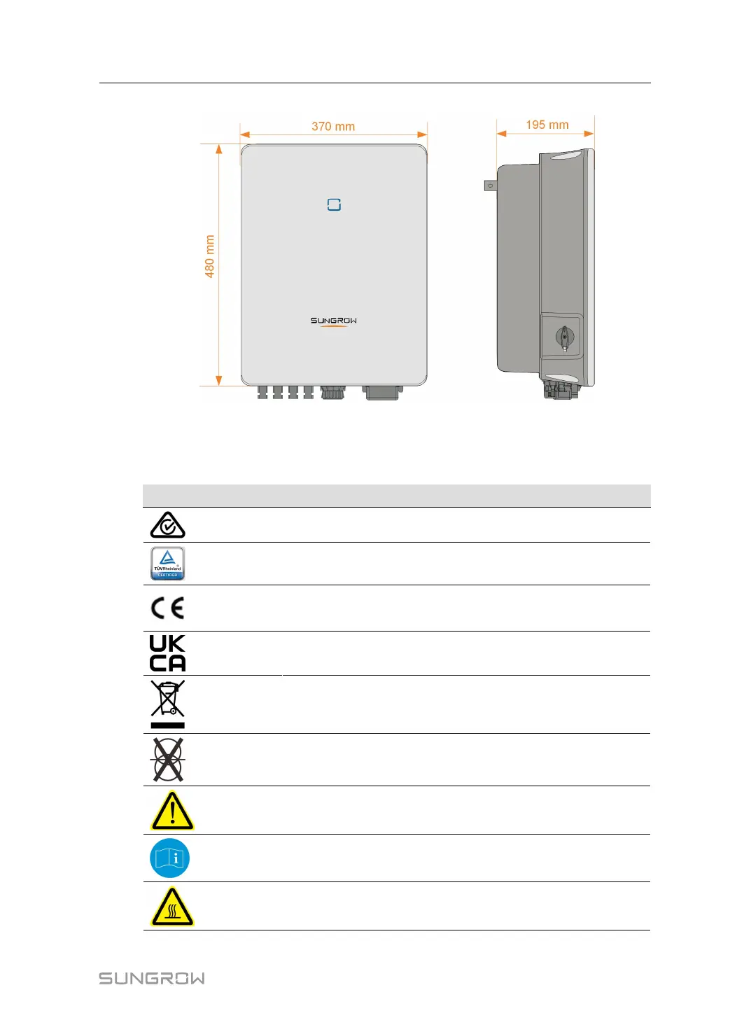 Burn danger due to the hot surface that may exceed 60℃.