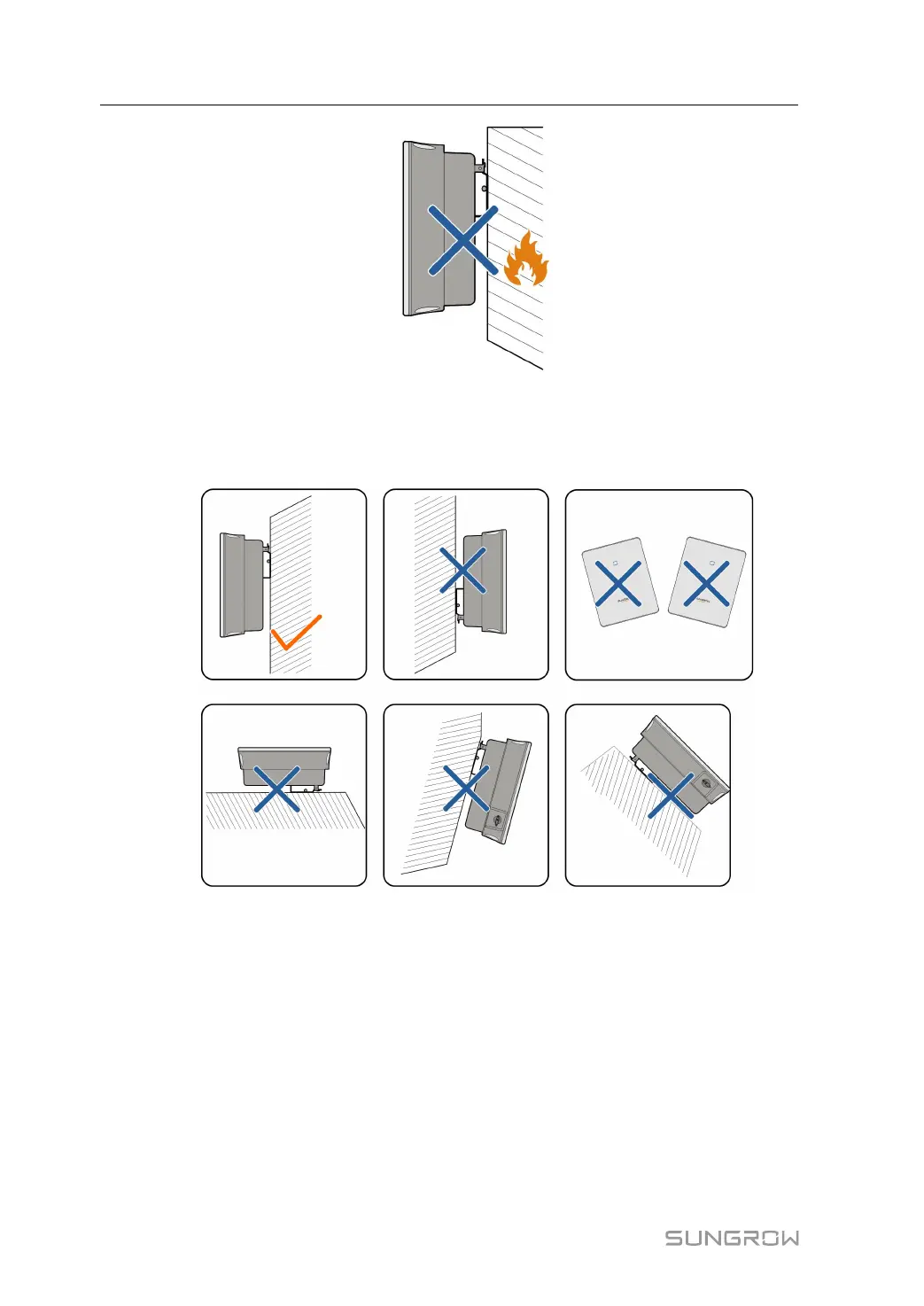 Install the inverter vertically. Never install the inverter horizontally, or at forward/backward