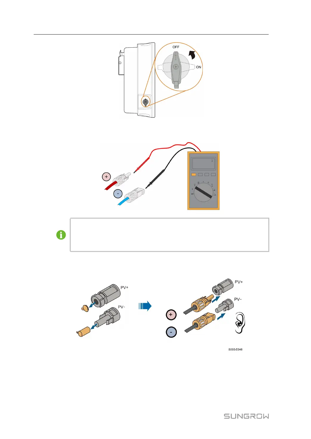 step 2 Check the cable connection of the PV string for polarity correctness and ensure that the