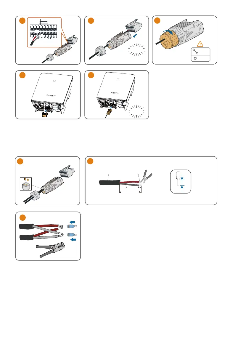 The followings describe the procedure to crimp two wires to the two-wire core end terminal. Other steps are the
