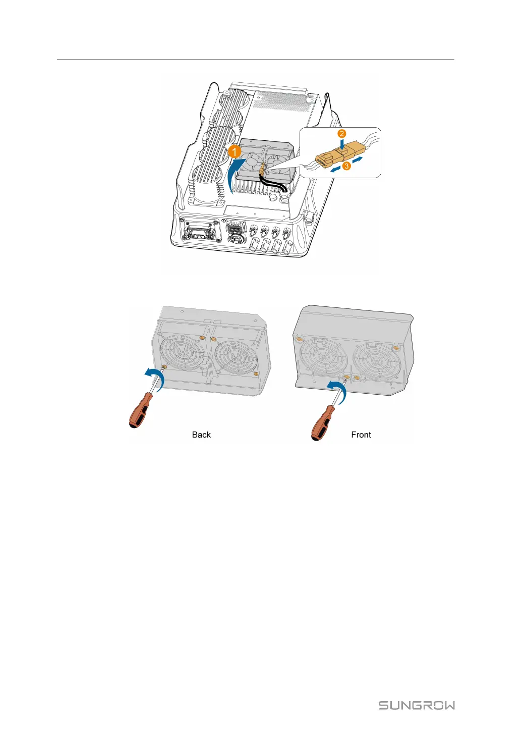 step 8 Install the dust covers and then the fan bracket to the inverter. Restart the inverter.