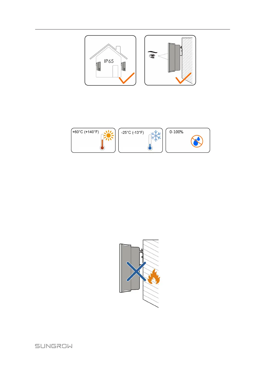 • Inverters free from direct sunlight, direct rain and snow have longer service life. Consider