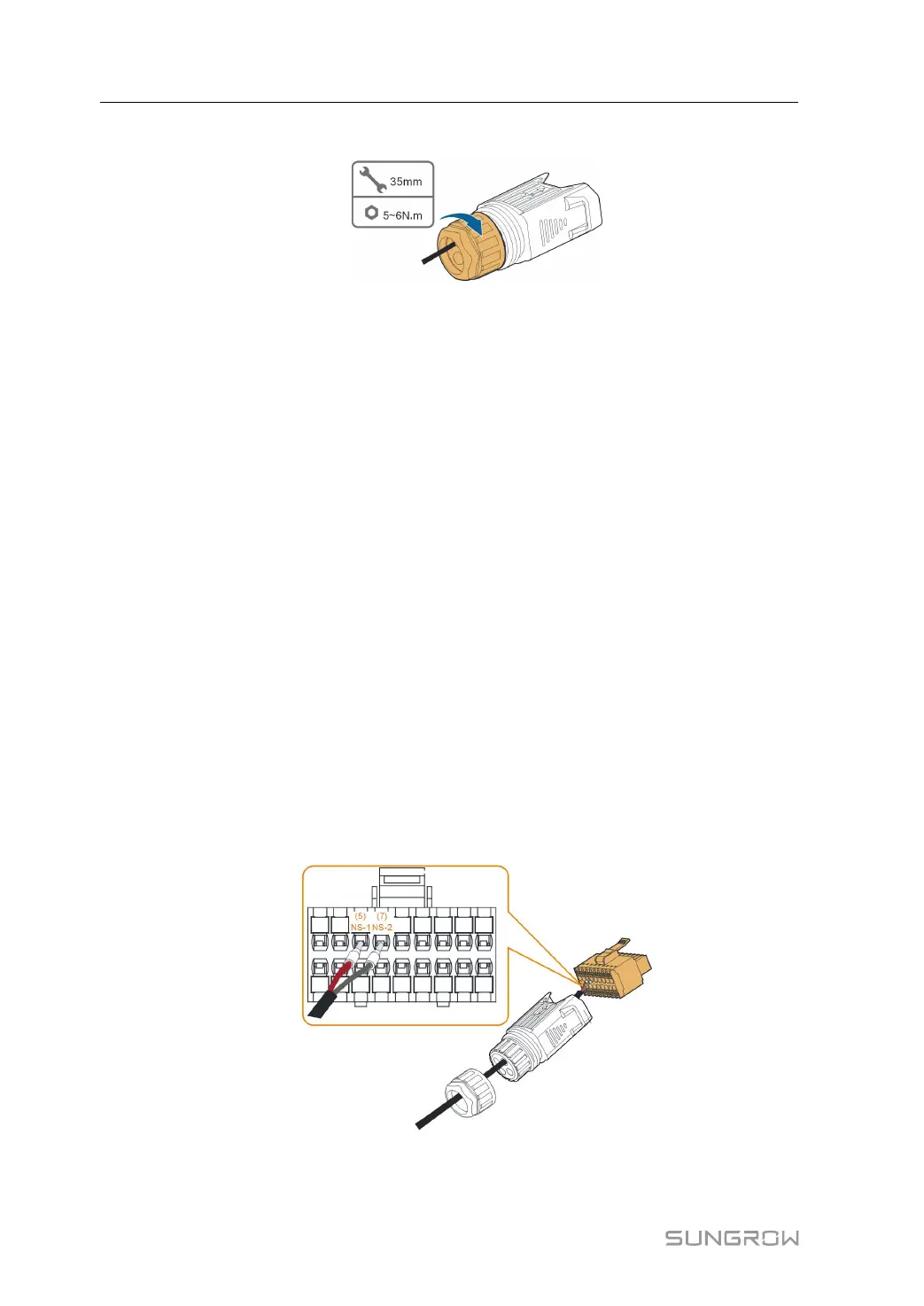 Plug the wires to NS-1 and NS-2 terminals according the labels on the bottom of the inverter.