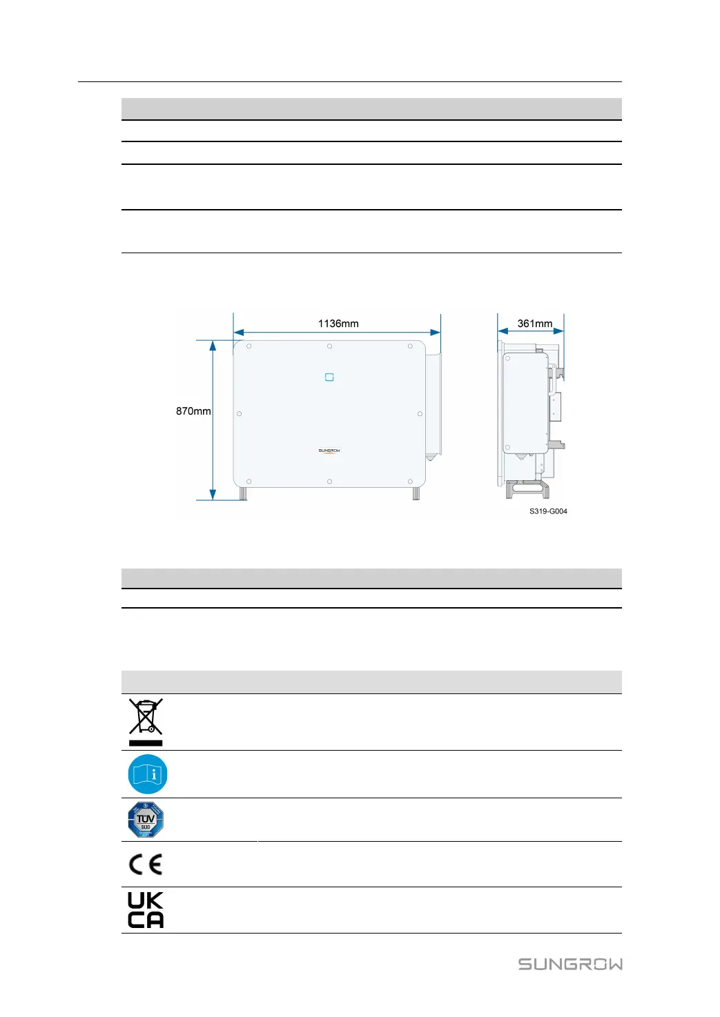 SG285HX / SG320HX / SG333HX / SG350HX ≤ 116 kg