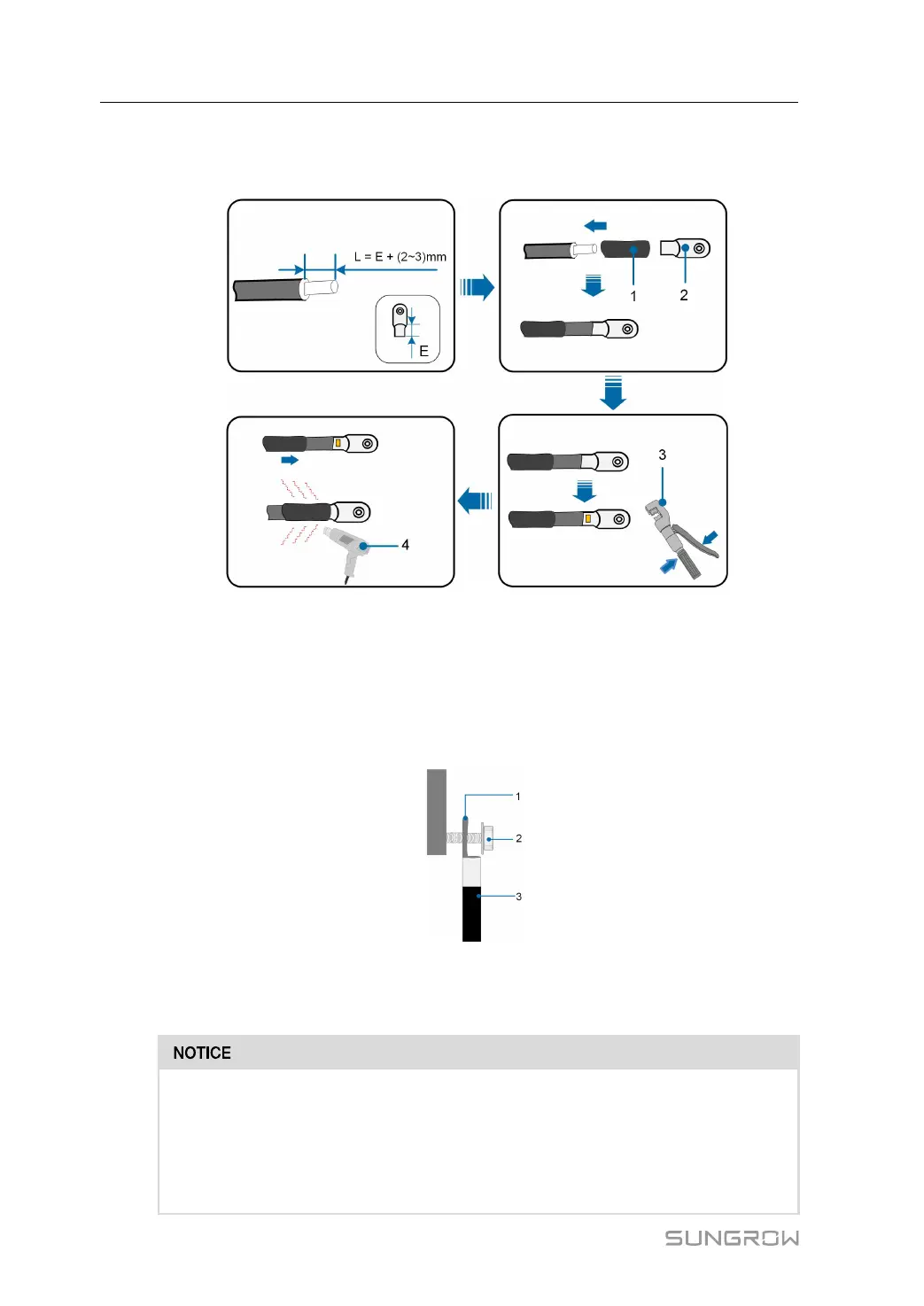 1. Copper to Aluminium adapter terminal 2. Flange nut 3. Aluminium cable