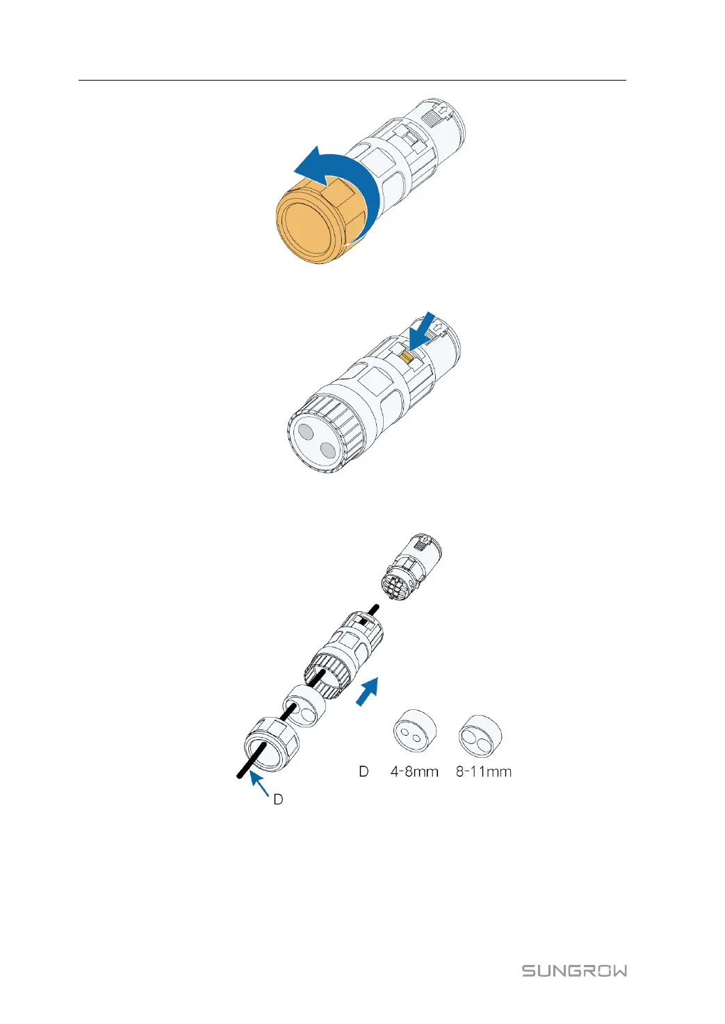 step 3 Select a seal according to the cable outer diameter. Lead the cable through the swivel nut,