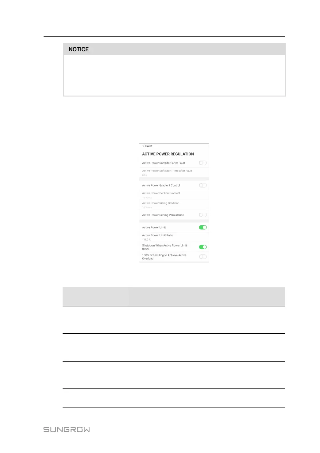 Tap Settings→Power Regulation Parameters→Active Power Regulation to enter the
