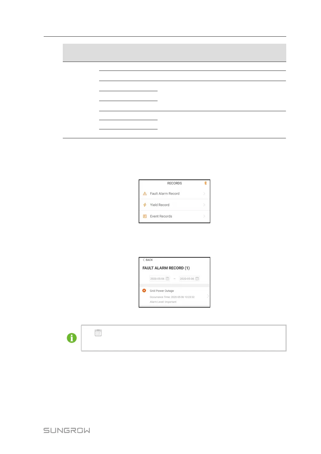 Tap Fault Alarm Record to enter the interface, as shown in the following figure.
