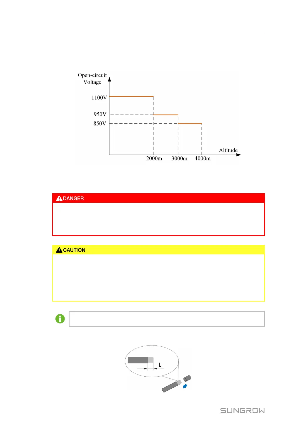 The following figure shows the open-circuit voltage limits at different altitudes. Before config-