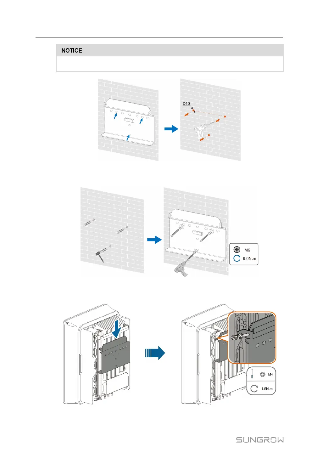 Step 3 Lift the inverter and slide it down along the wall-mounting bracket to make sure they