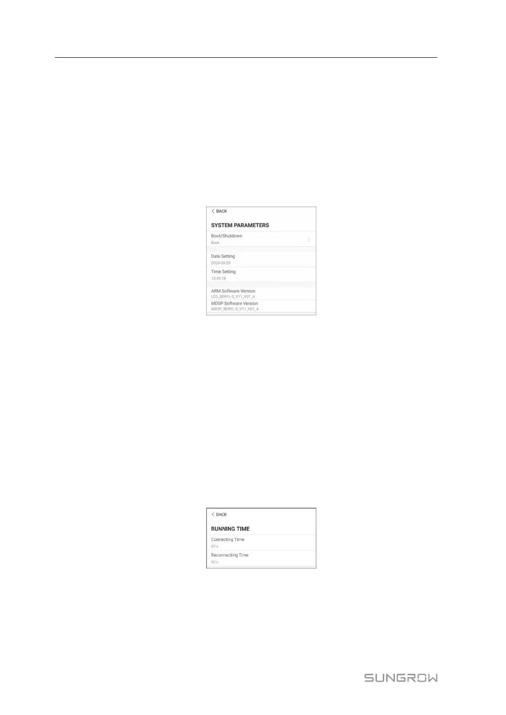 Tap SSeettttiinnggss→→SSyysstteemm PPaarraammeetteerrss to enter the corresponding screen, as shown in the