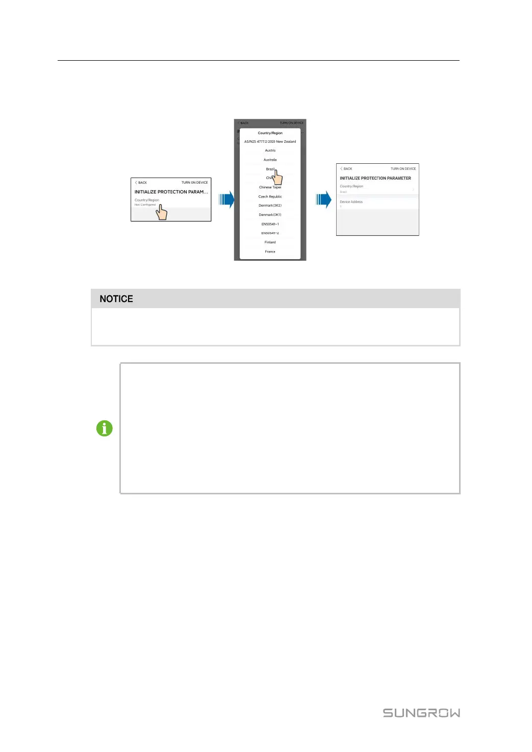 parameter. Tap Country/Region to select the correct country, as shown in the following