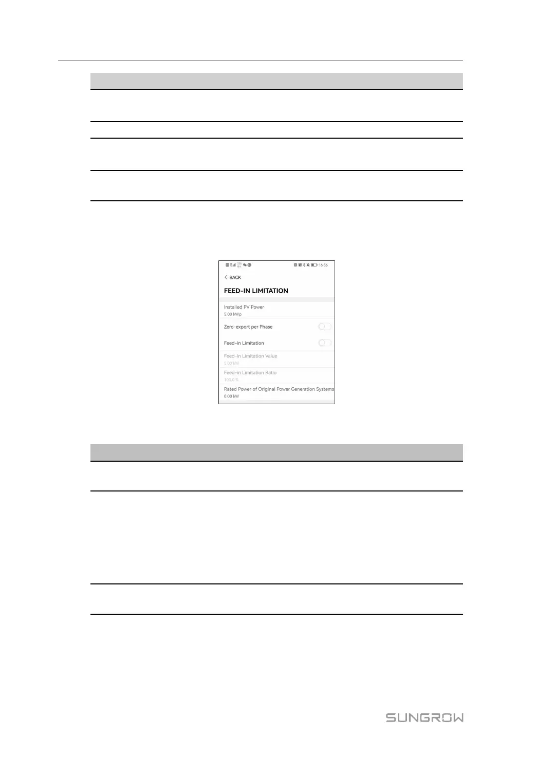 Tap Settings→Power Regulation Parameters→Feed-in Limitation to enter the screen,