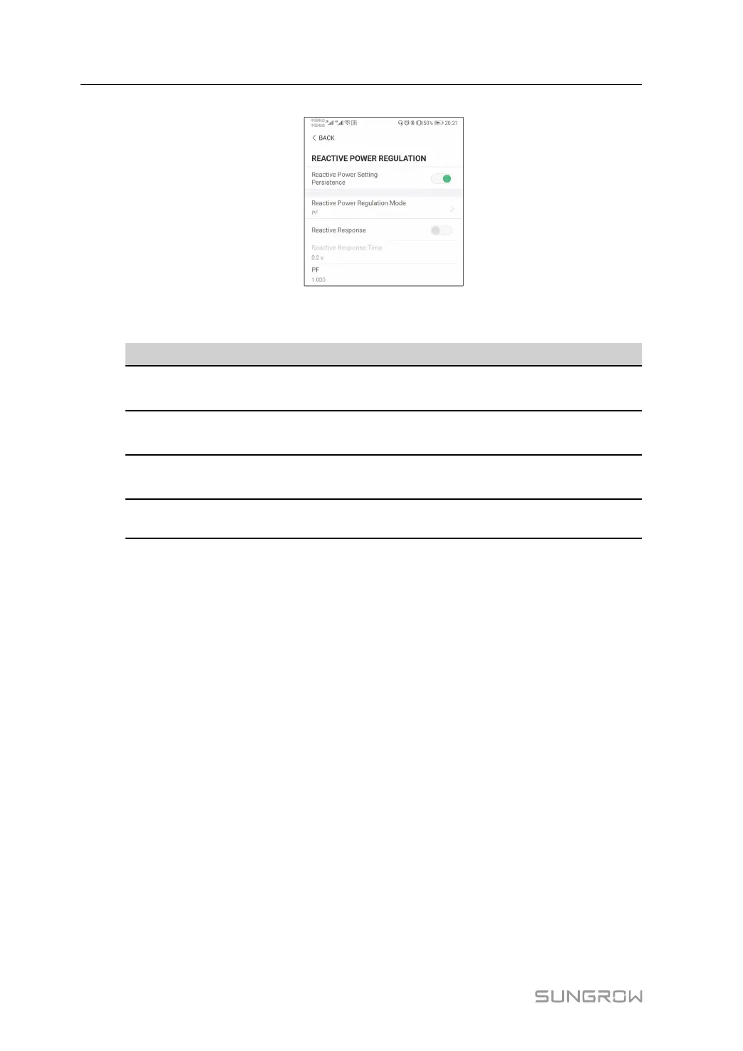 delivered reactive power ratio. The "Reactive Power Ratio" is set through the App.