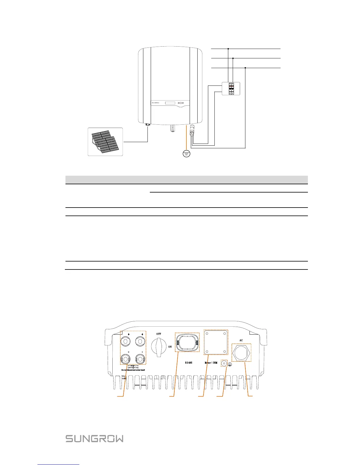 All electrical terminals are located at the bottom of the inverter.