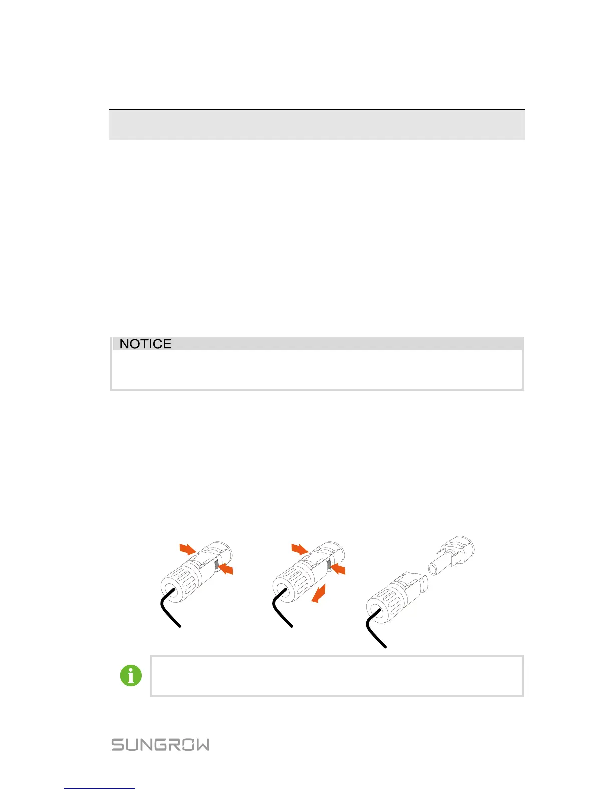 7. Release the locking part of PV connectors by pressing on the ribbing of