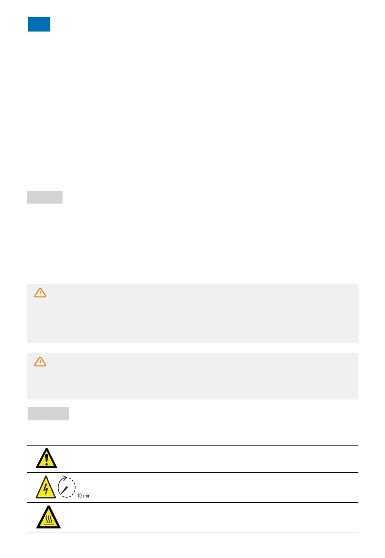 Do not touch live parts for 10 minutes after disconnection from the power sources.