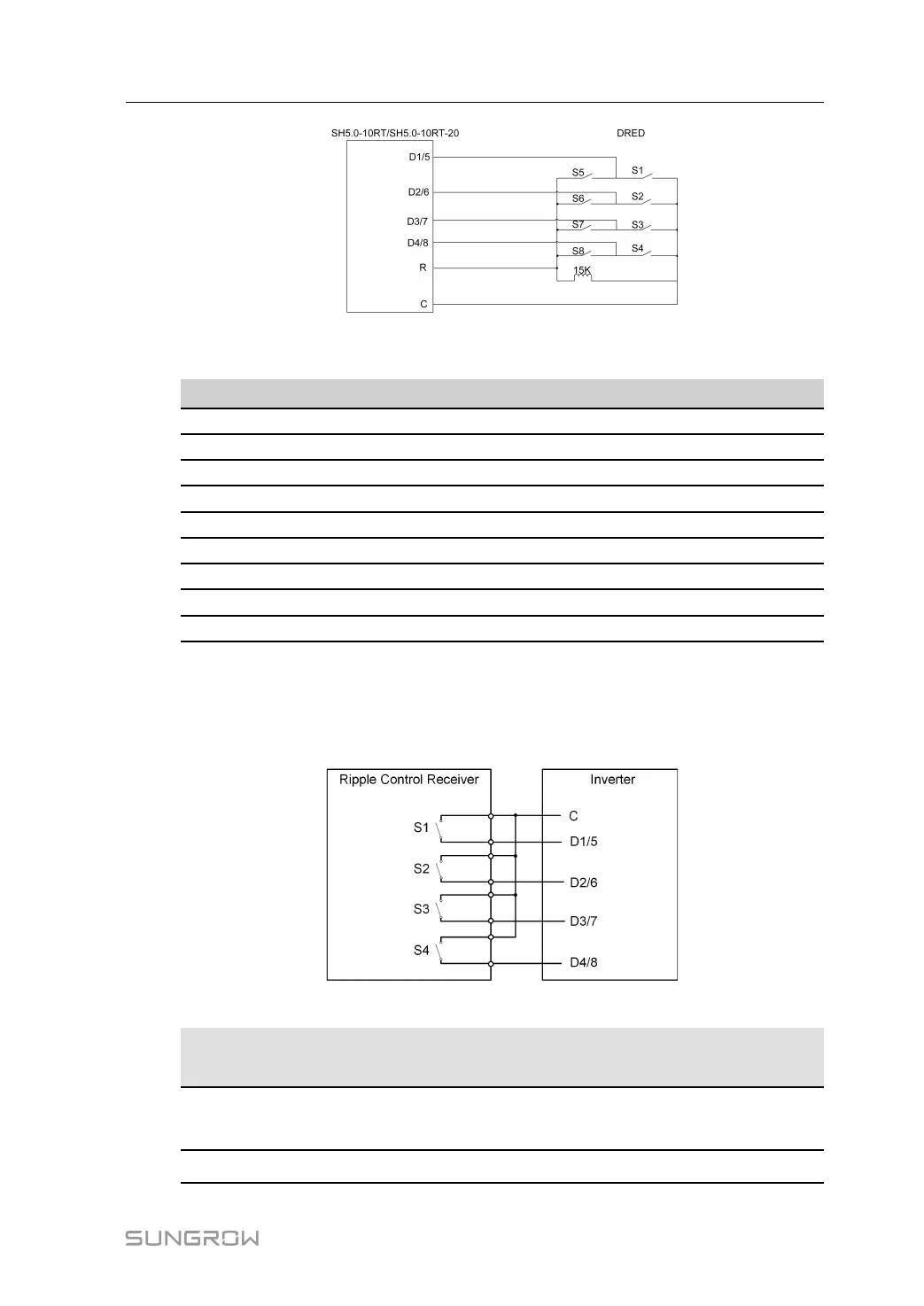 Wiring of the ripple control receiver dry contact cables is shown in the figure below: