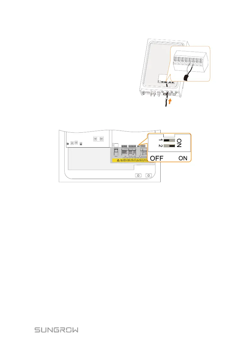 4. When the length of RS485 cable is longer than 100 m, push the 120