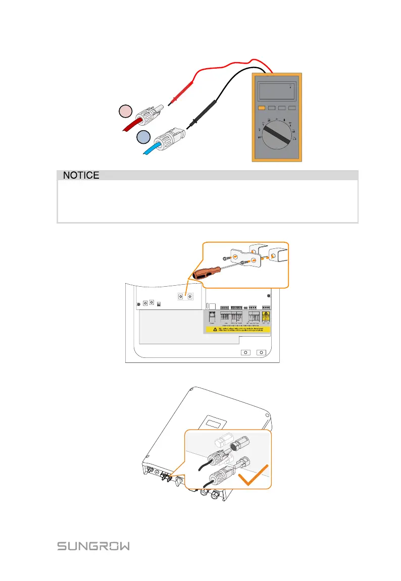 The inverter will not function properly if any PV polarity is reversed.