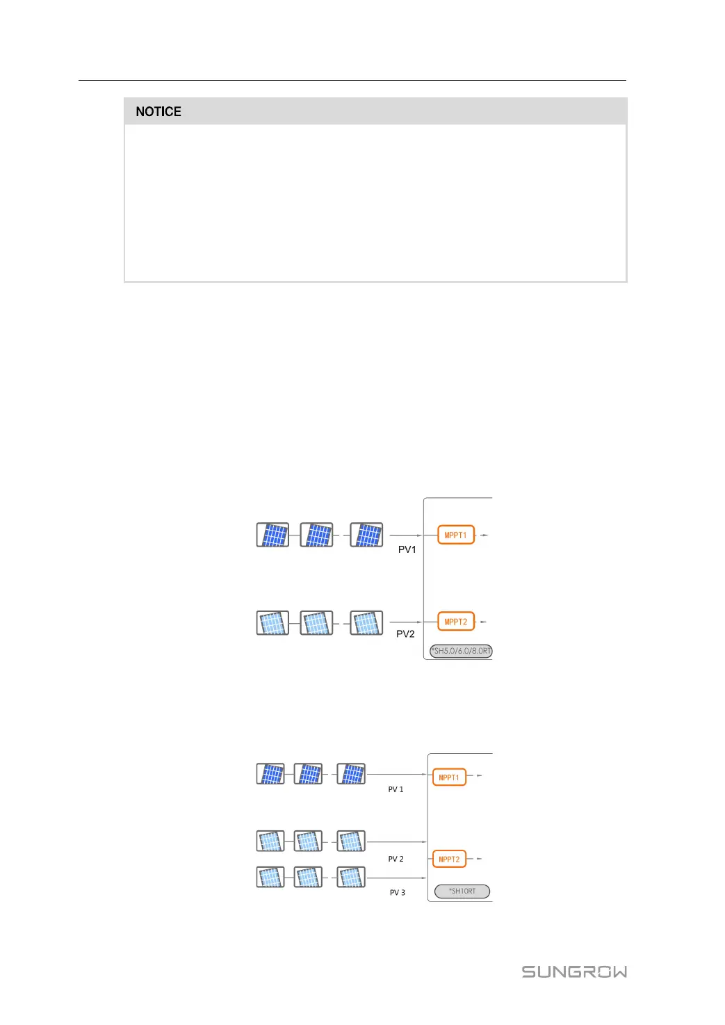 For SH5.0/6.0/8.0RT, each PV input operates independently and has its own MPPT. In this