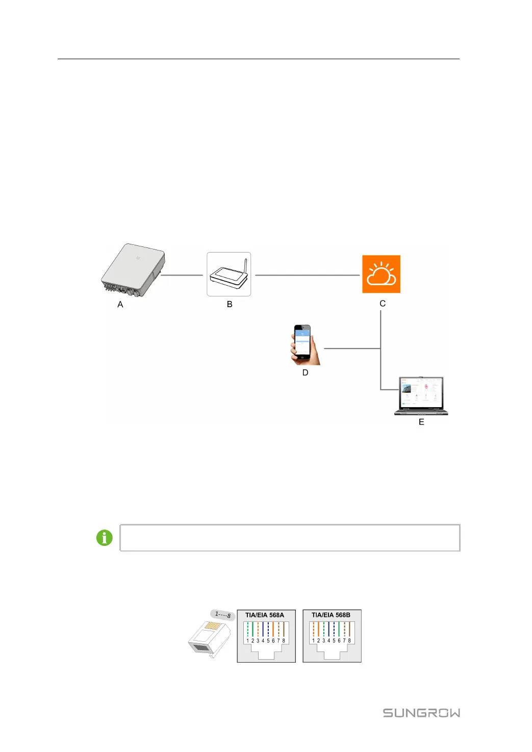 (A) Inverter (B) Router/Switch (C) iSolarCloud server