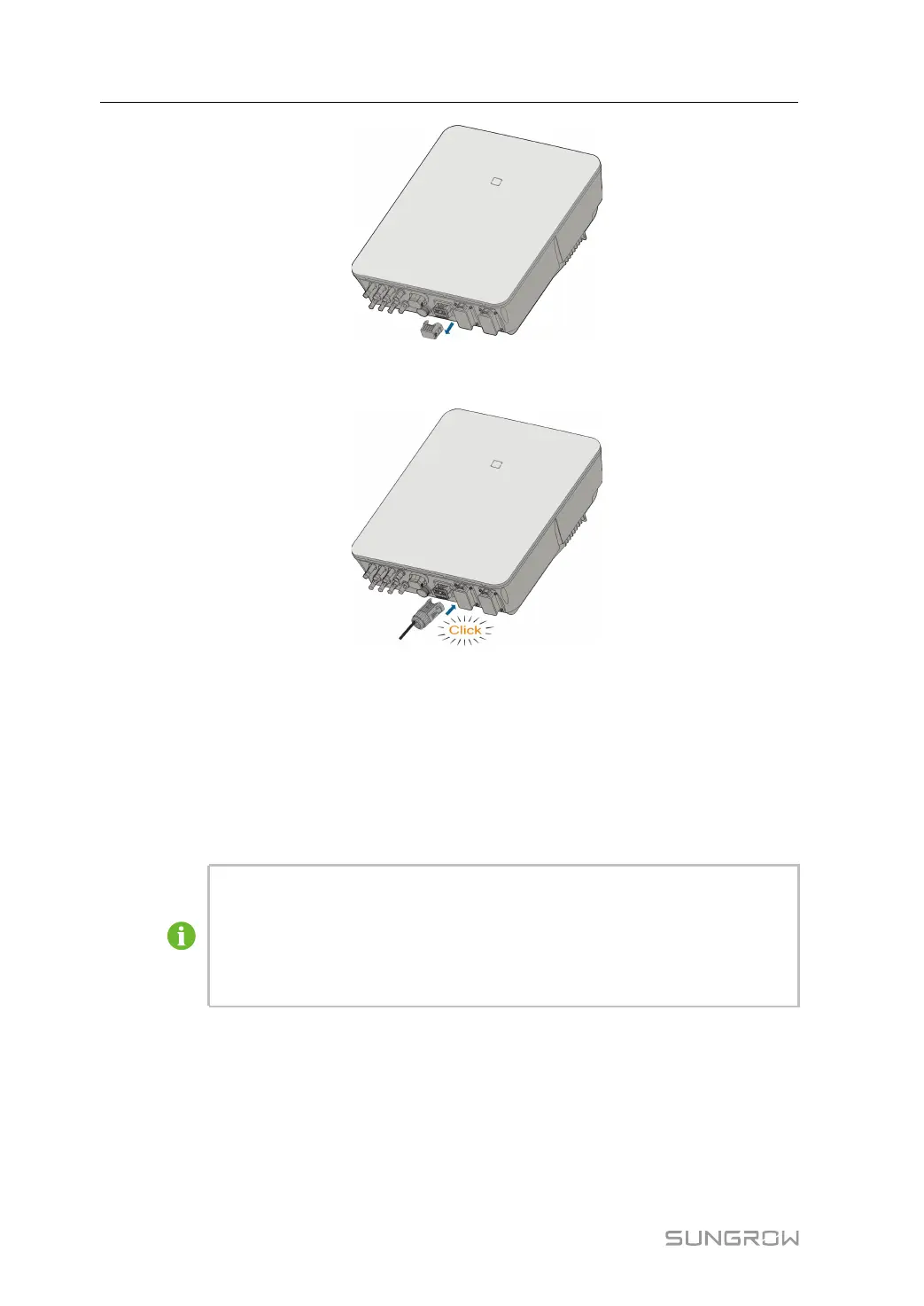 step 2 Insert the COM connector into COM terminal on the bottom of the inverter until there is an