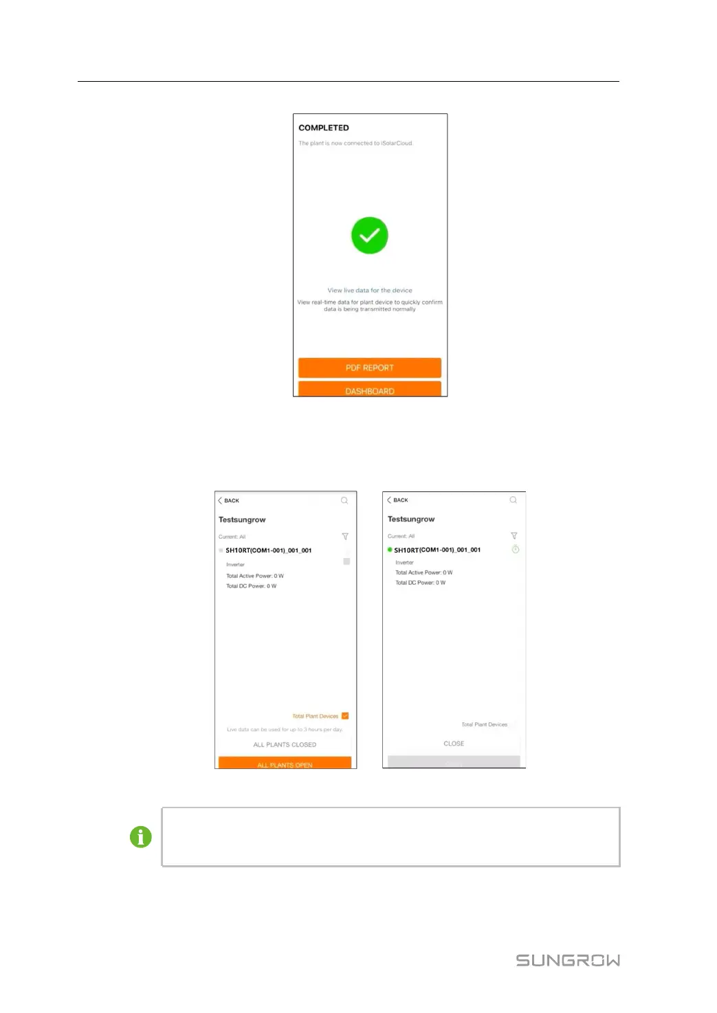 Contact Sungrow service to enable live data function of devices. Once enabled,