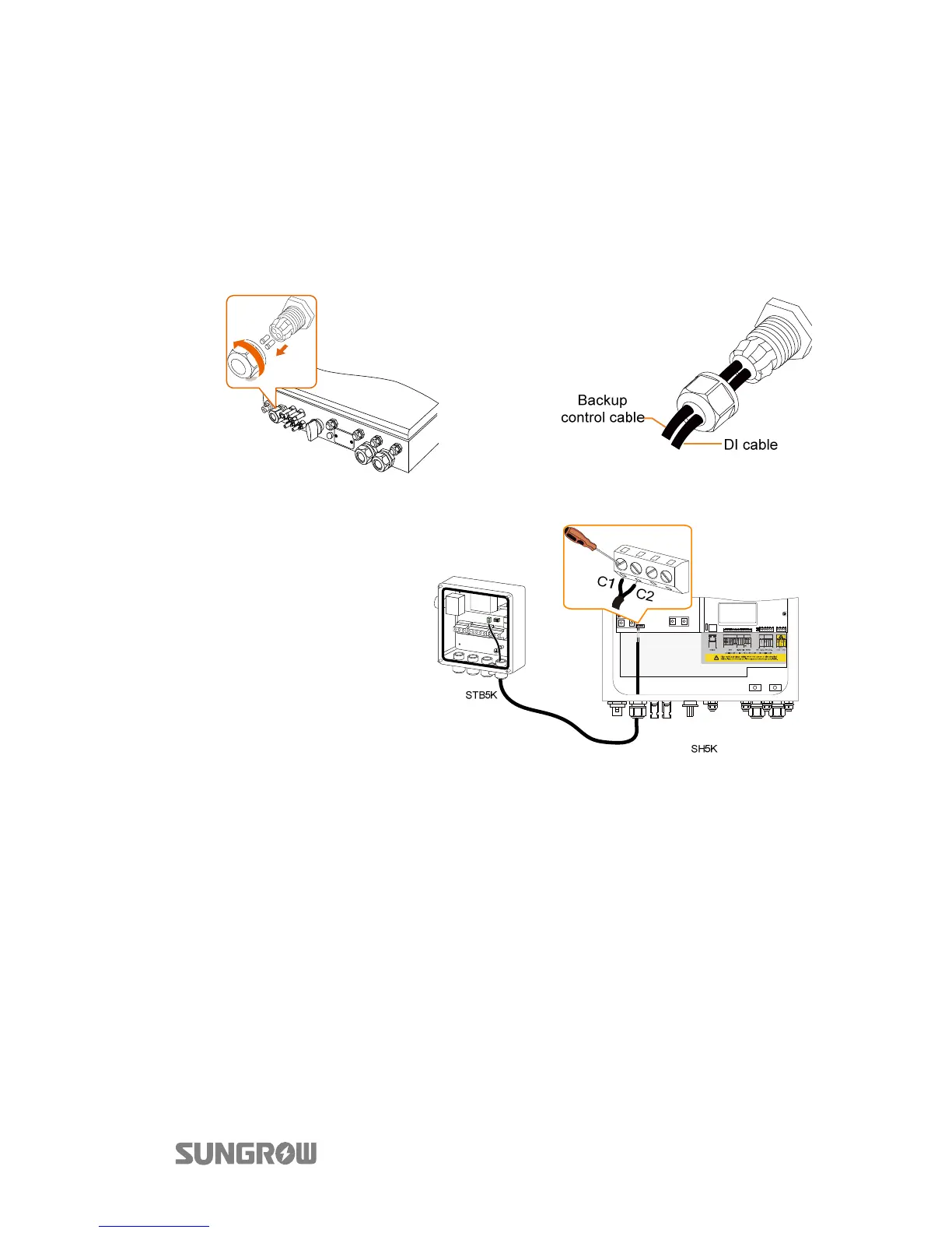 The control cables (with end marks C1 and C2) and the DI cable (with end marks DI1,