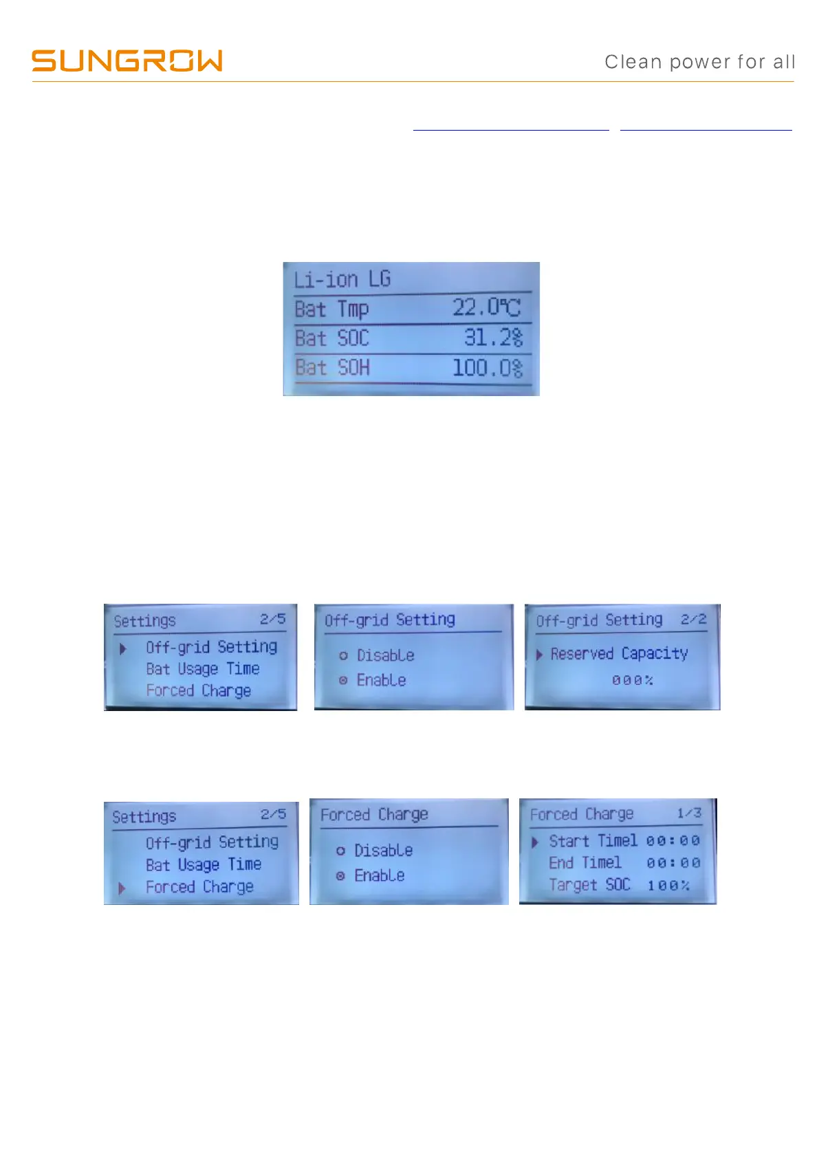 4. Check the ‘Forced charge’ setting. The battery will not discharge in the time period of