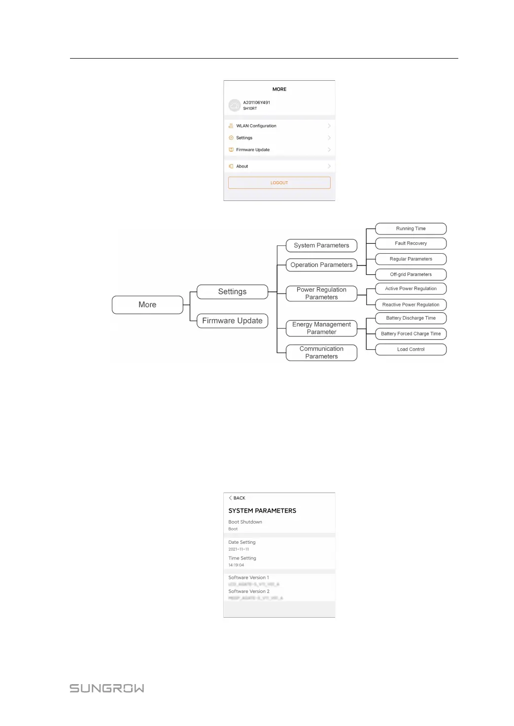 • Set parameters including inverter system parameters and energy management