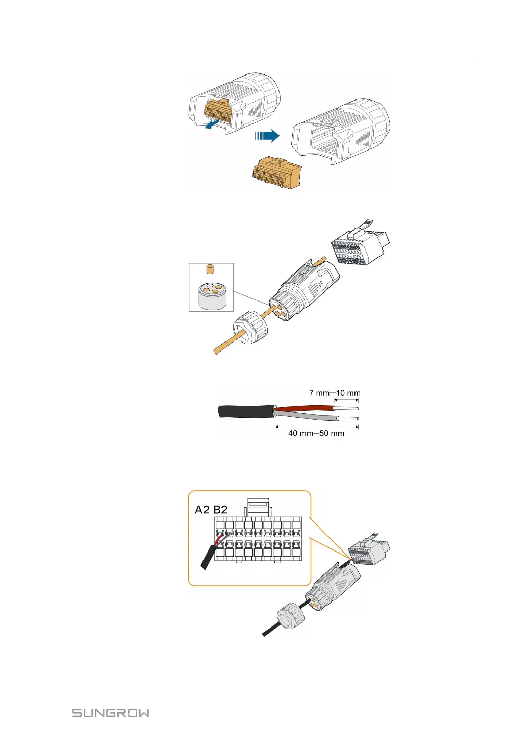 step 5 Plug the wires into the RS485 terminal according the labels on the bottom of the inverter.