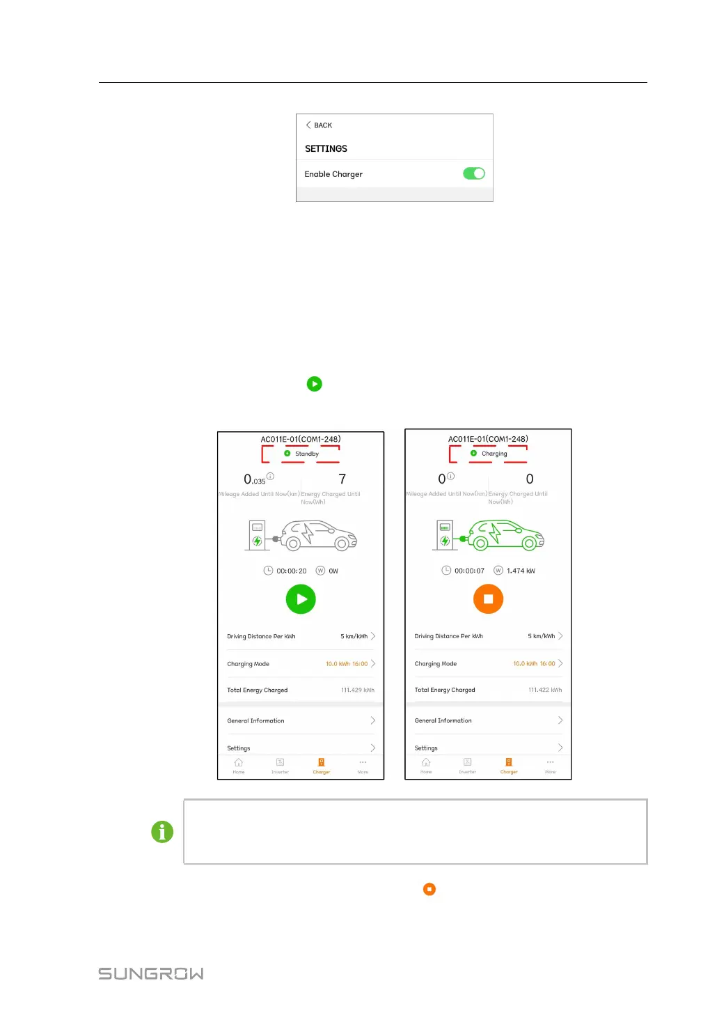 Tap the switch again to disable the charger, in this case the charger will be in "Disable"