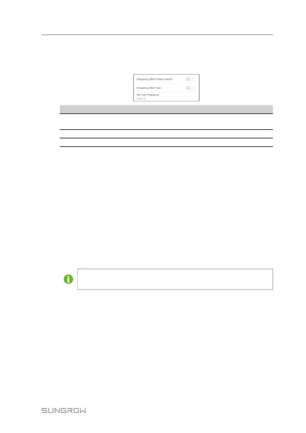 creases beyond the value specified in Set Test Frequency, the PV inverter limits its output