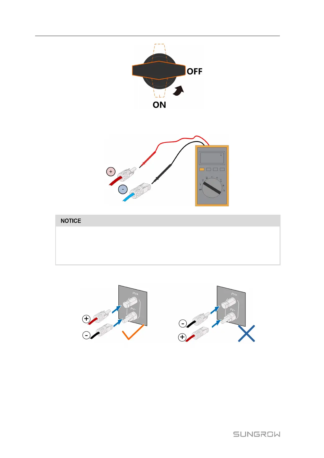 step 2 Check the cable connection of the PV string for polarity correctness and ensure that the