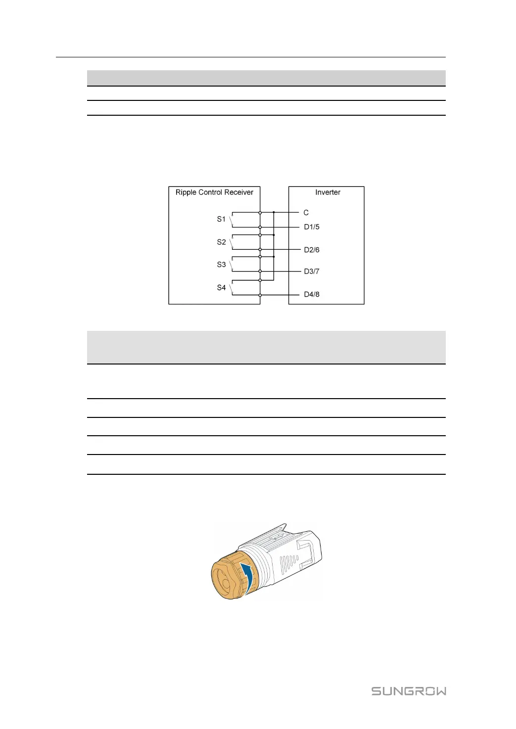 Wiring of the ripple control receiver dry contact cables is shown in the figure below: