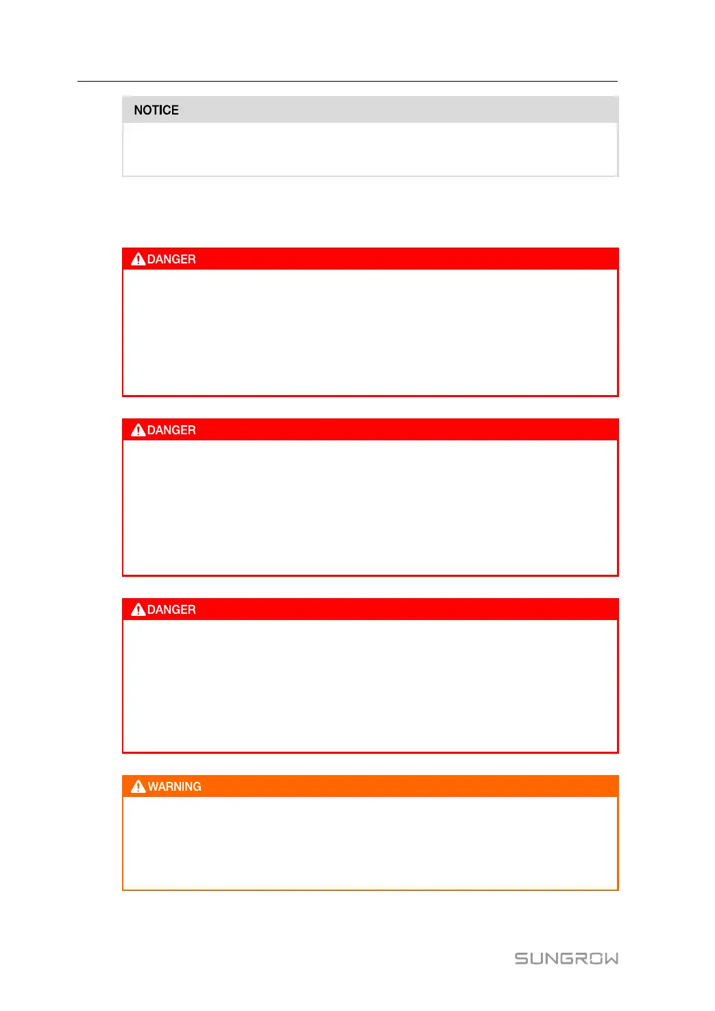 • Respect all safety instructions listed in relevant documents about PV strings.