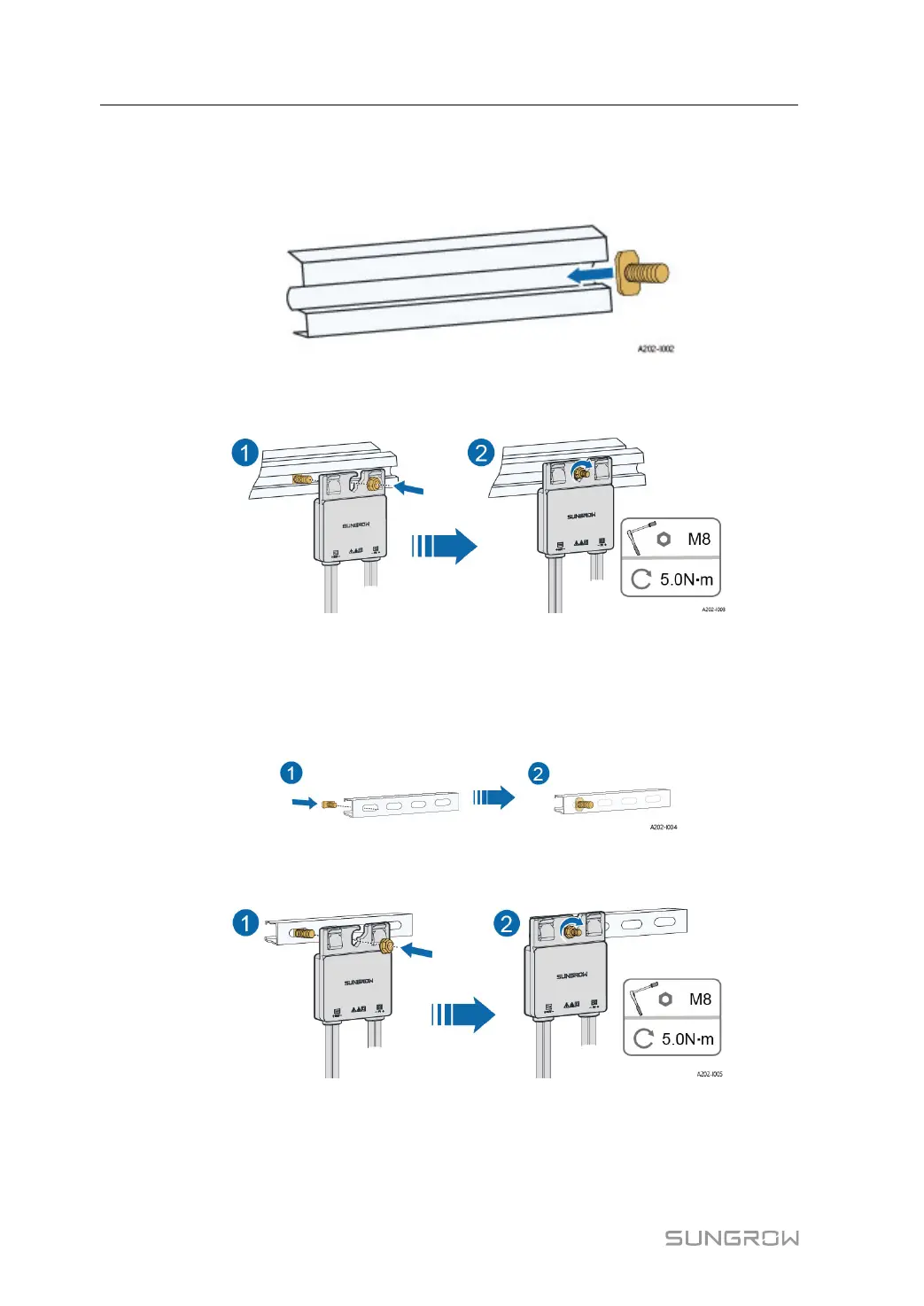 step 2 Hang the optimizer at the T-head bolt through the bolt hole and fix it on the steel guide rail