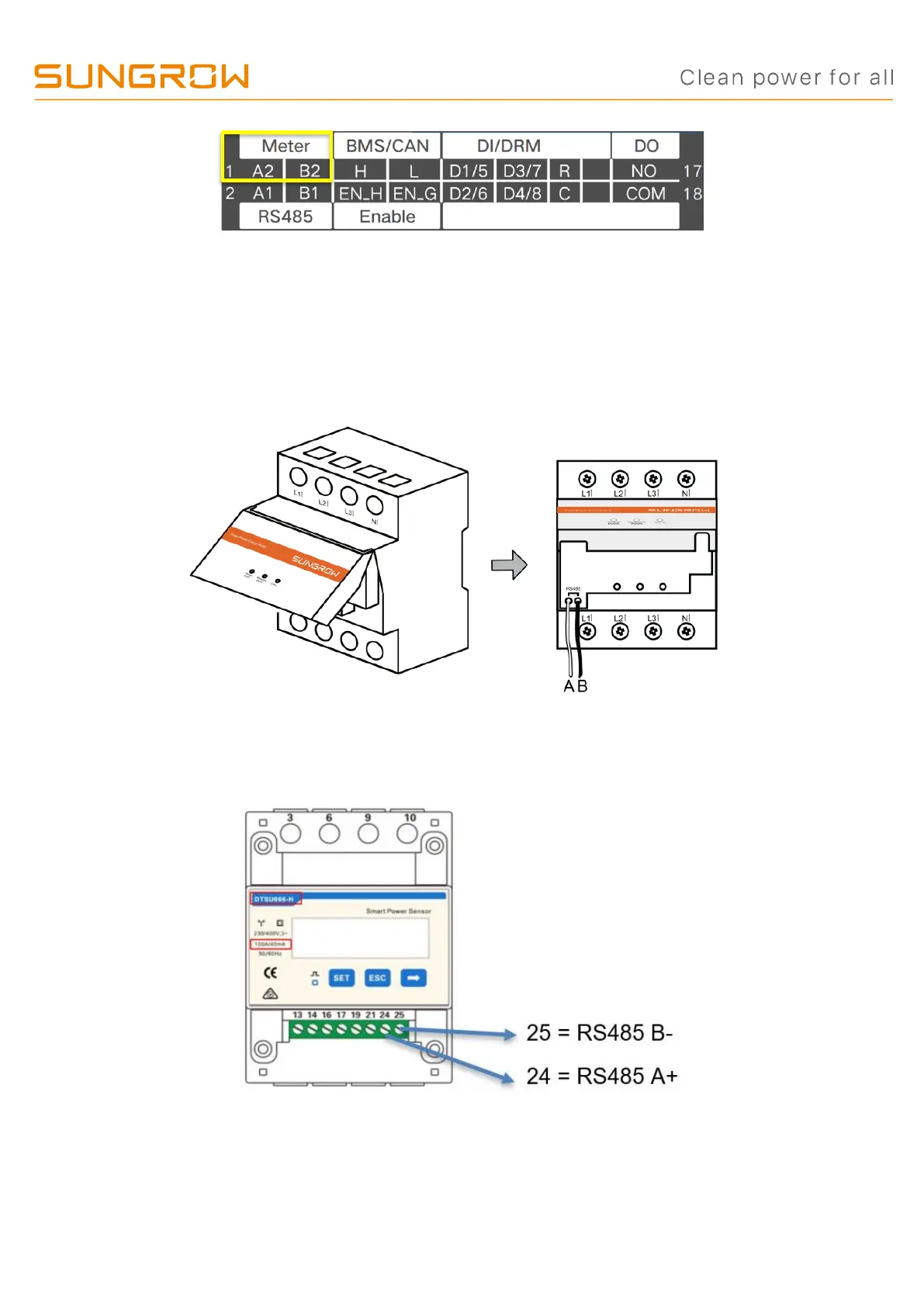 Energy meter RS485 connection (T65 and DTSU666):